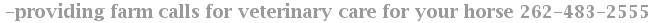 For routine farm calls, urgent calls, emergencies or questions, please call Dr. Gloria, the horse doctor/vet, at: 262-483-2555.